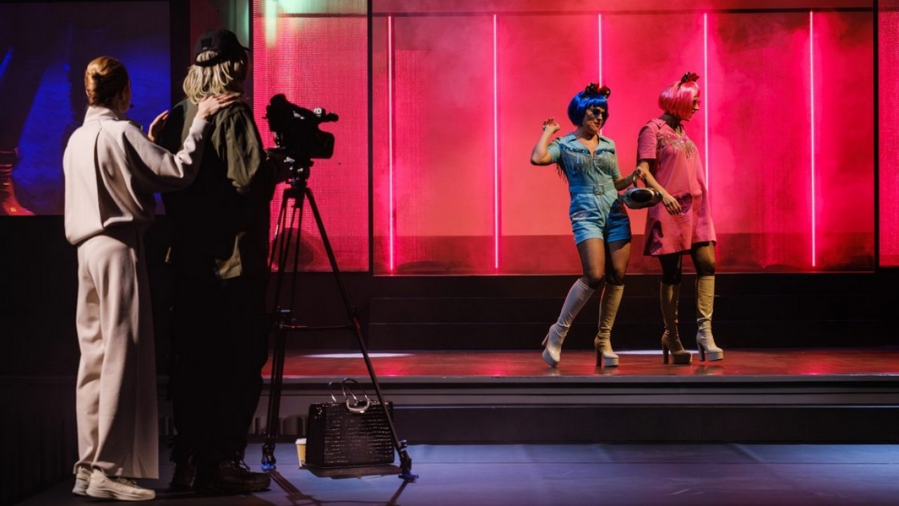Obsada staje na wysokości zadania. Największe brawa należą się duetowi Michał Przestrzelski-Katarzyna Mikiewicz. Przestrzelski po raz kolejny prezentuje swoje komediowe (i nie tylko) zdolności – w roli Eldona wypada bardzo przekonująco. Mikiewicz nic udowadniać nie musi. Znamy ją z wcześniejszych spektakli Piotra Dąbrowskiego, m.in. "Czarownice z Salem", "Pinokio" czy "Baby Blues". Jej Gina, nerwowo przygładzająca włosy i popijająca kawę, przejmuje władzę nad zagubionym chłopakiem. Stworzyła celebrytę Eldona, by się go pozbyć. Bezwzględna, zapatrzona w siebie i przejęta swoją telewizyjną karierą. Niewiele by jednak zrobiła bez kamerzysty imieniem Dougie – tutaj Bernard Bania.