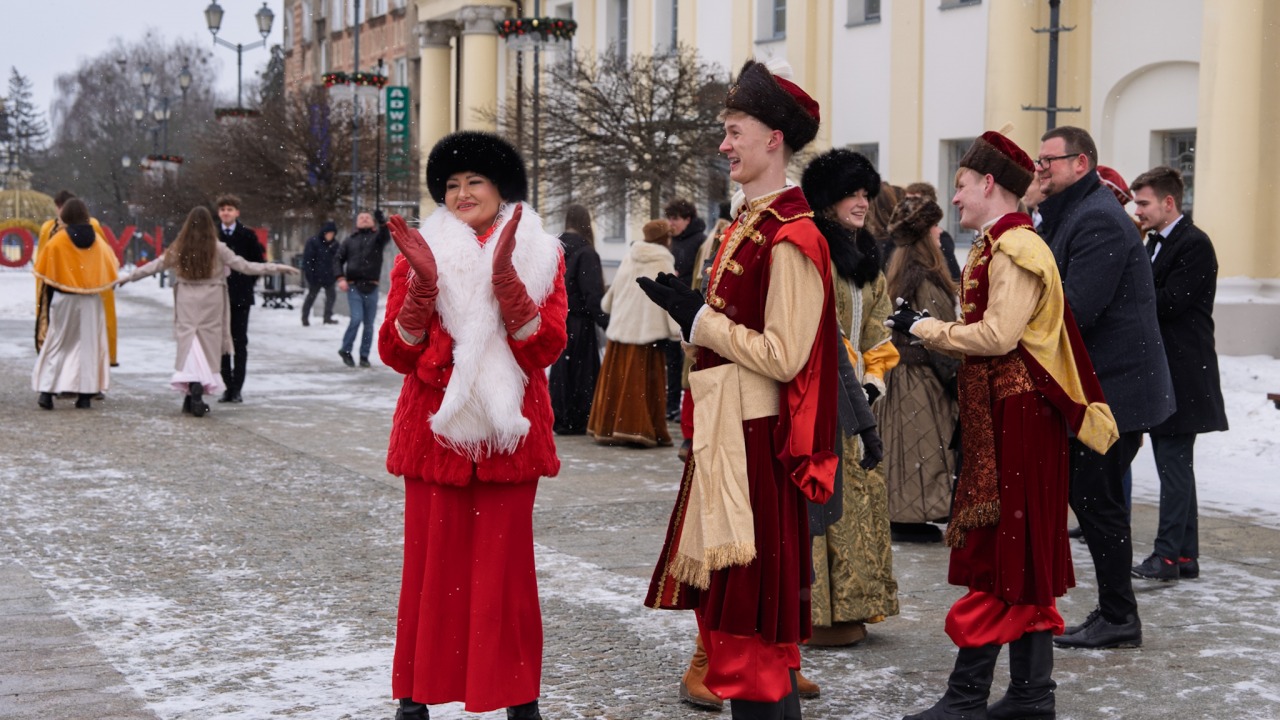 W sercu miasta, w środę (4 lutego), kilkadziesiąt par zaprezentowało uroczysty taniec. Poloneza poprowadził prezydent Tadeusz Truskolaski, a towarzyszyła mu maturzystka Joanna Jarmoc z XI Liceum Ogólnokształcącego im. Rotmistrza Witolda Pileckiego w Białymstoku, która wcieliła się w postać Izabeli Branickiej z Poniatowskich. Wszystkich uczestników balu powitał uczeń XI LO – Kacper Witkowski, występujący w roli hetmana Jana Klemensa Branickiego.
