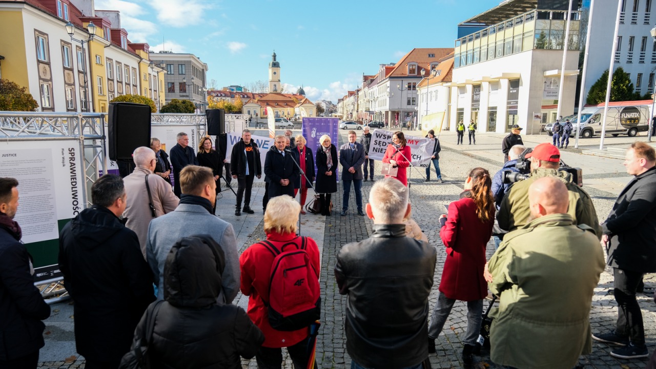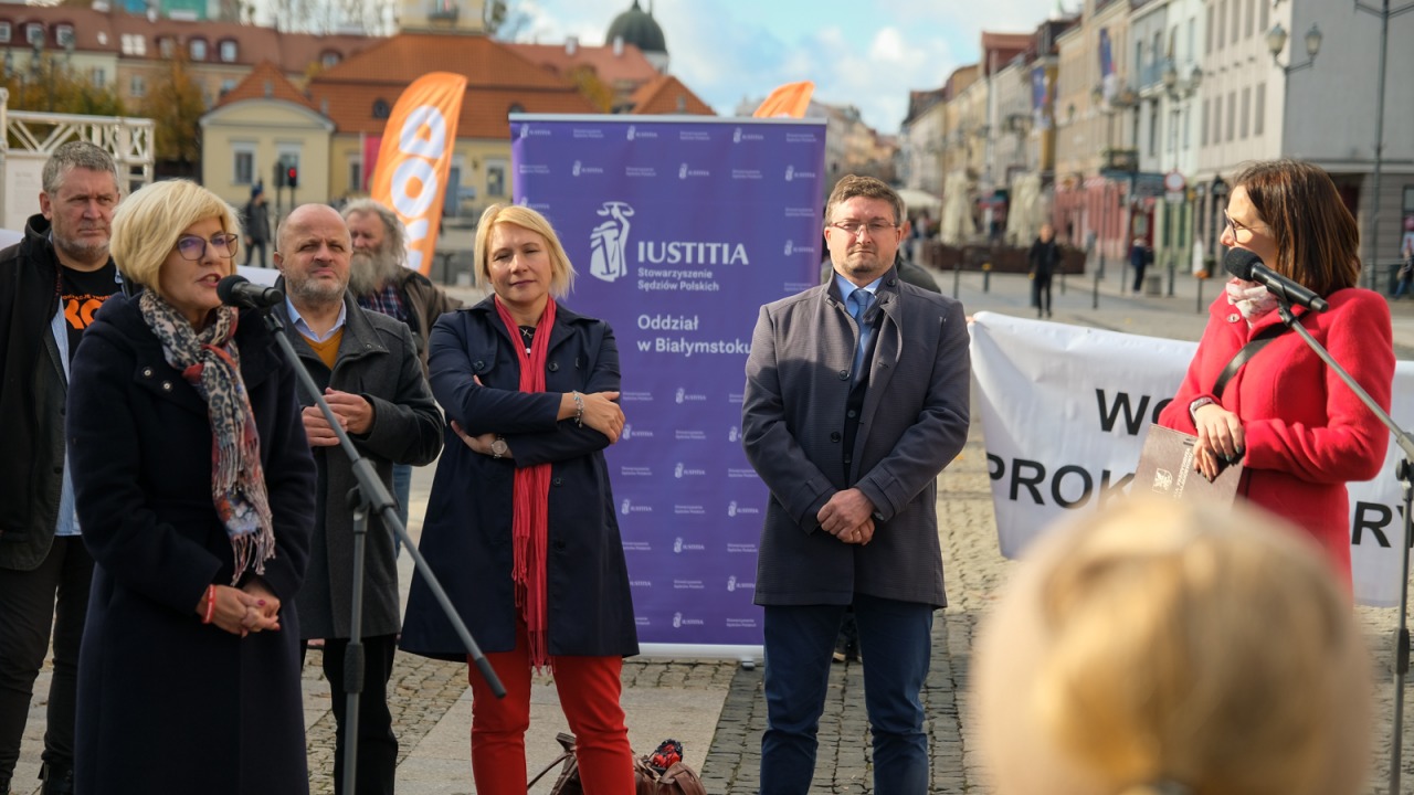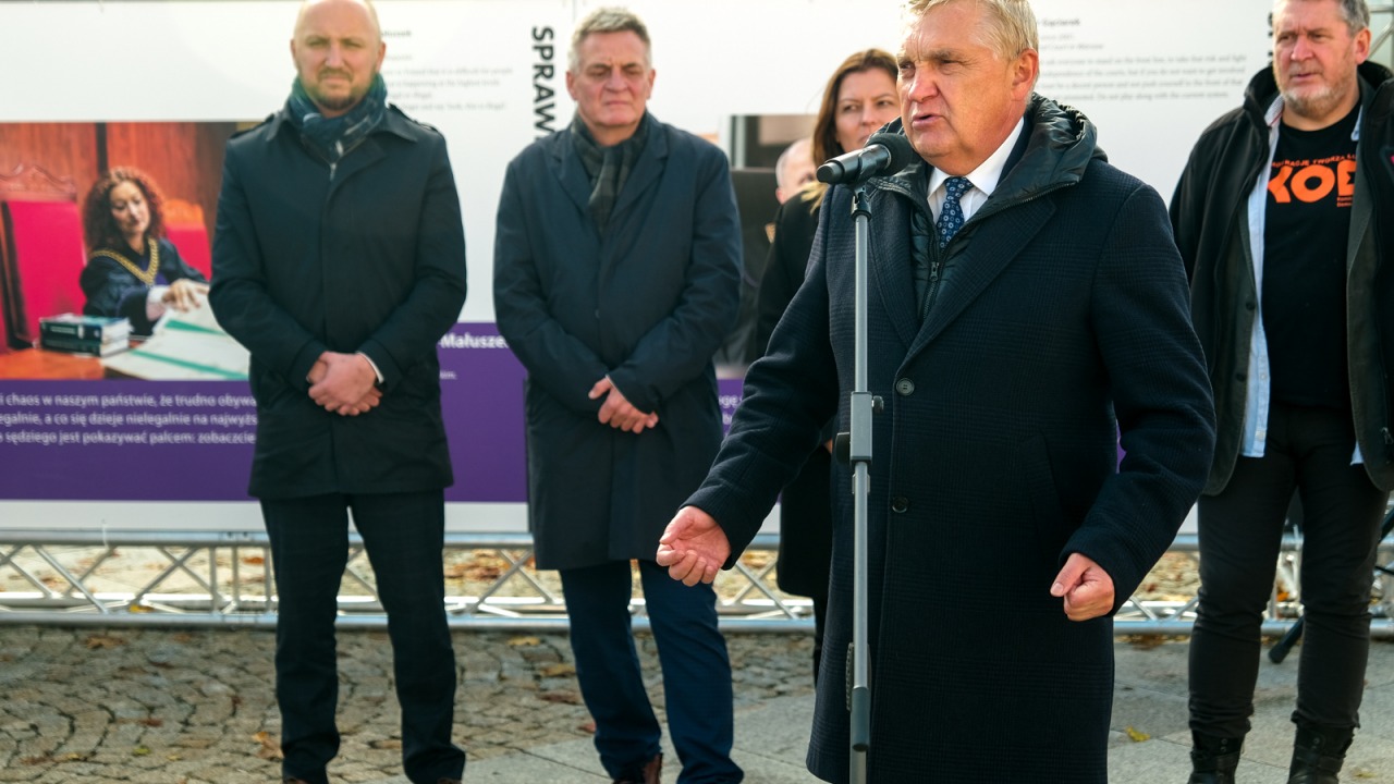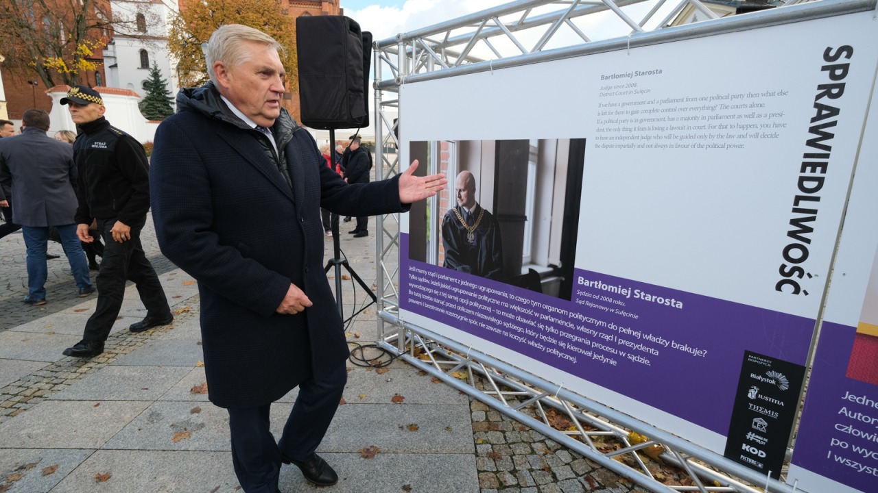 - Wystawa „Sprawiedliwość” to swego rodzaju podsumowanie kilku lat oporu prawników przed niszczycielską reformą sądownictwa. Trzeba pokazywać ich walkę z destrukcją niezawisłych sądów, w obronie rządów prawa. Ta wystawa jest jednym z pretekstów do dyskusji na ten bardzo ważny dla demokratycznego państwa temat - powiedział prezydent Białegostoku Tadeusz Truskolaski.